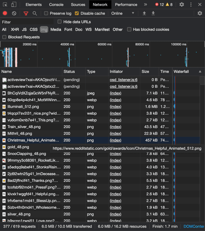 - Open up the Network tab and refresh the page.