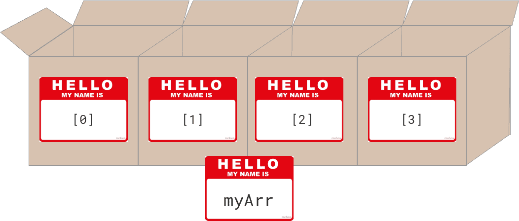 myArr = ["Hello", "Howdy", "Hey", "Hola"] // create a 4-item array, and put it inside myArrAs long as we know the index (number - starting from zero!) that we stored each of these values in, then we can retrieve them later with the bracket notation: