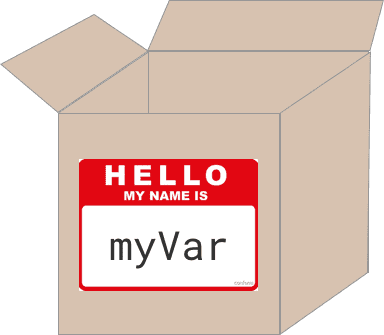 We give these boxes a name by declaring them, and then we can put things into them by assigning values to them.