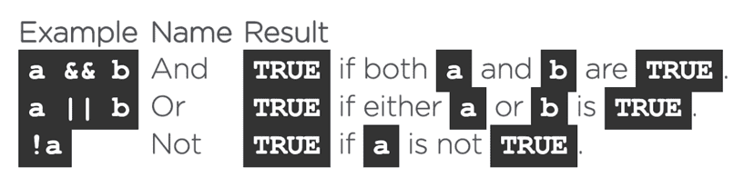 And we also have logical operators, which can combine 2 boolean values to create one boolean value: