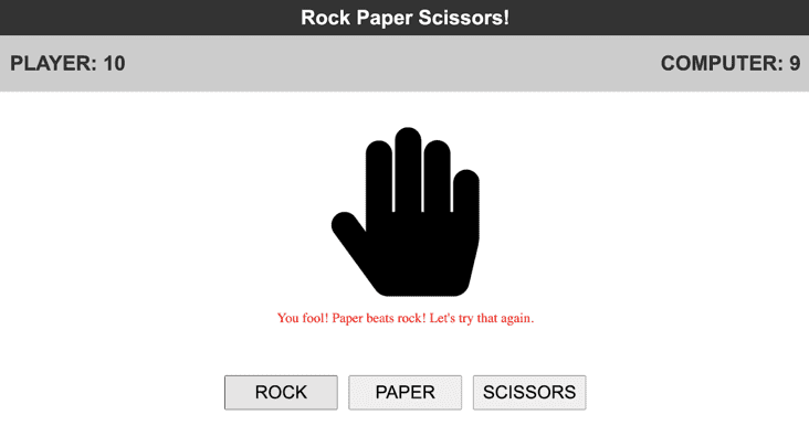 - A header reading “Rock Paper Scissors”