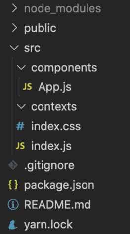 contextsinside of the src directory.- This will eventually hold our application store code when we start setting up our context.