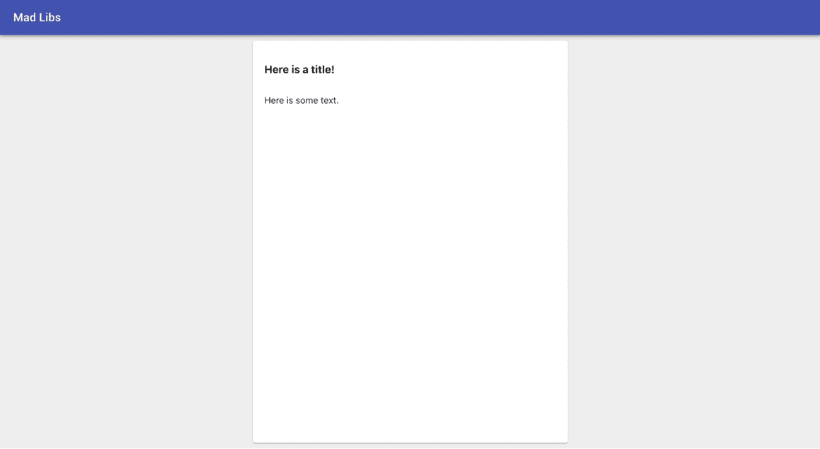 }This endpoint gives back an object with a title, an array called value, and an array called blanks. We’ll be using all three of these to create our mad libs app!
